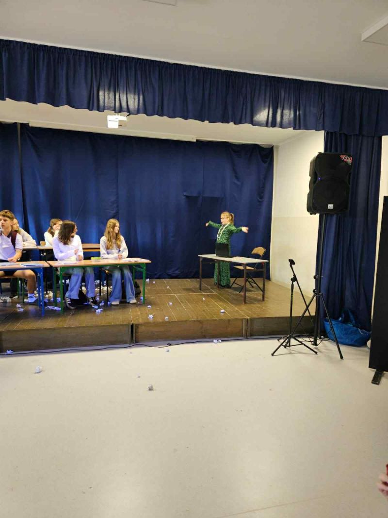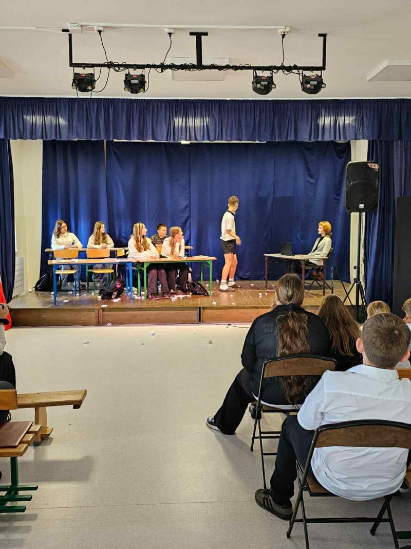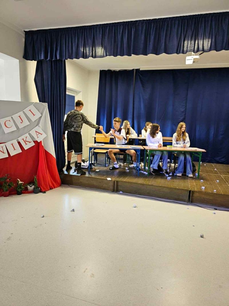 Część oficjalną akademii rozpoczął Przewodniczący Samorządu Uczniowskiego Bartosz Wichowski wraz z opiekunem Samorządu, panią Małgorzatą Remiasz-Patyk. Pan Dyrektor Radosław Siołkowski podziękował wszystkim pracownikom szkoły za zaangażowanie w wykonywanie powierzonych im obowiązków, życząc im wielu sił i wytrwałości w pracy. Następnie wszyscy uczestnicy akademii mieli okazję obejrzeć program artystyczny przygotowany przez uczniów z kółka tanecznego i teatralnego, w którym to znalazły się humorystyczne scenki, występ taneczny, ale też refleksje na temat życia szkoły i zawodu nauczyciela.