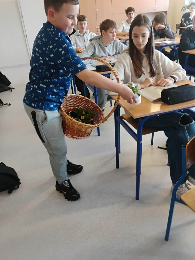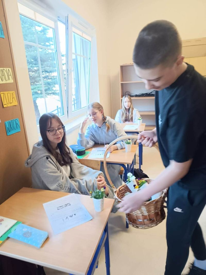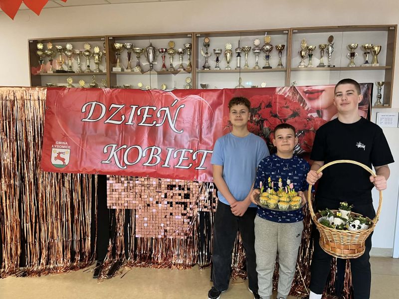 W dniu 9 marca świętowaliśmy w szkole Dzień Kobiet. Dziękujemy serdecznie Radzie Rodziców za piękne kwiatki, a Samorządowi Uczniowskiemu za pyszne babeczki. To był bardzo miły i wyjątkowy dzień. Wszystkie klasy obejrzały nagranie programu artystycznego w wykonaniu chłopców z klasy 7a oraz dziewczynek z kółka teatralnego przygotowanego specjalnie na tę wyjątkową okazję.